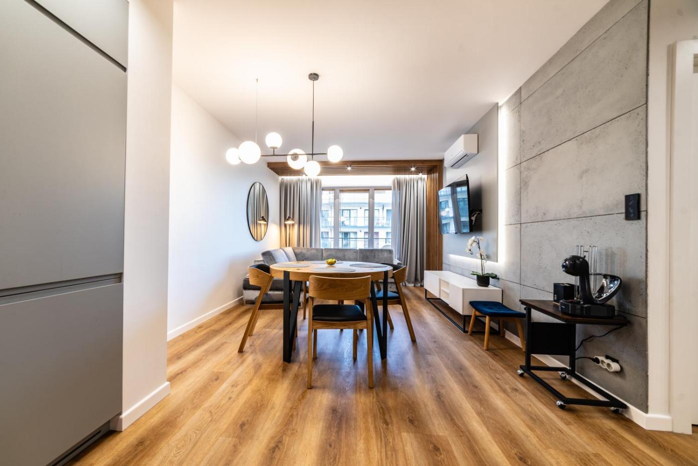Apartament z 1 sypialnią. Guests will have a special experience as this apartment features a private pool and a sauna. This air-conditioned apartment is comprised of 1 living room, 1 separate bedroom and 1 bathroom with a shower. In the well-fitted kitchen, guests will find a stovetop, a refrigerator, a dishwasher and kitchenware. Featuring a terrace with river views, this apartment also offers a washing machine and a flat-screen TV with streaming services. The unit offers 2 beds. Apartament - 4 osobowy. Powierzchnia pokoju ok.: 50 mkw.
