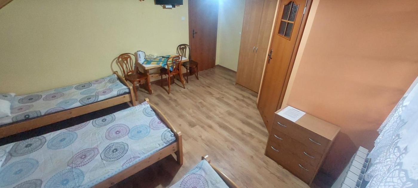 Pokój czteroosobowy z prywatną łazienką. The quadruple room offers a wardrobe and an electric kettle, as well as a private bathroom boasting a shower. The unit has 3 beds. Pokój Czteroosobowy - 4 osobowy. Powierzchnia pokoju ok.: 18 mkw. ;