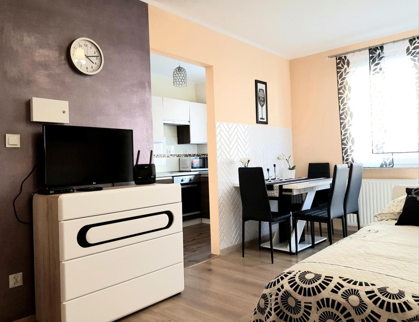 Apartament. This apartment consists of a kitchen, a seating area, 1 separate bedroom and 1 bathroom with a walk-in shower and a hairdryer. The fully equipped kitchen features a stovetop, a refrigerator, kitchenware and an oven. Featuring a balcony with city views, this apartment also provides a washing machine and a flat-screen TV with cable channels. The unit offers 2 beds. Apartament - 4 osobowy. Powierzchnia pokoju ok.: 30 mkw.