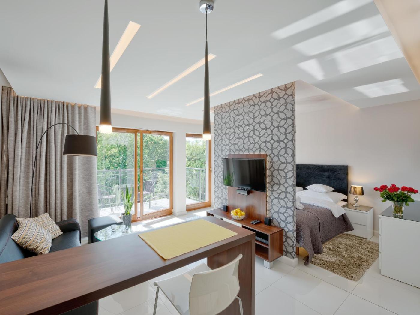 Apartament z 1 sypialnią. Boasting a private entrance, this air-conditioned apartment features 1 living room, 1 separate bedroom and 1 bathroom with a shower and a hairdryer. Guests can make meals in the kitchenette that has a stovetop, a refrigerator, a dishwasher and kitchenware. The apartment features a washing machine, soundproof walls, a tea and coffee maker, a flat-screen TV with streaming services, as well as garden views. The unit has 2 beds. Apartament - 3 osobowy. Powierzchnia pokoju ok.: 40 mkw.