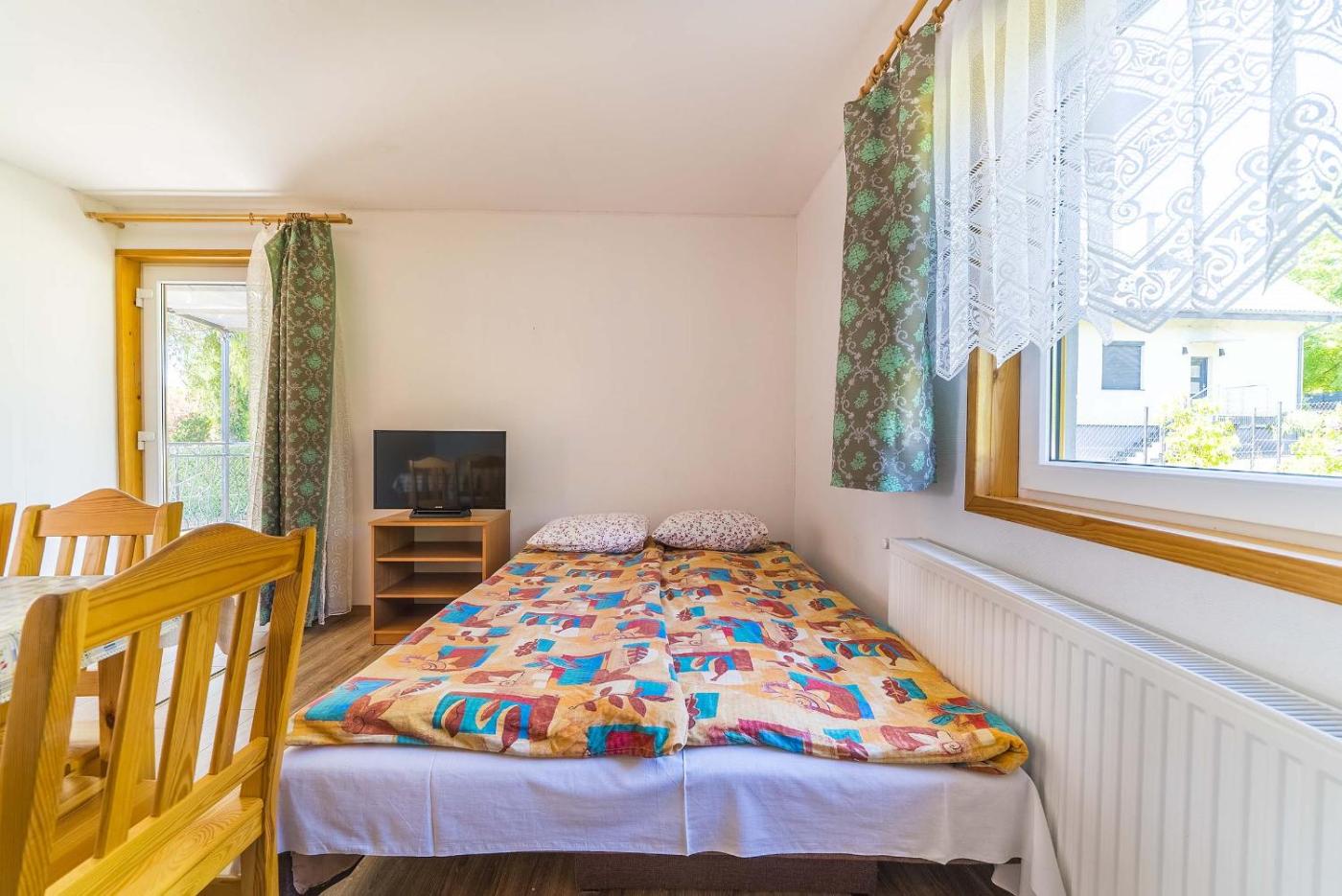 Domek z 1 sypialnią. This chalet comprises 1 living room, 1 separate bedroom and 1 bathroom with a shower. The chalets kitchenette, which features a refrigerator and kitchenware, is available for cooking and storing food. Featuring a terrace, this chalet also provides an electric kettle and a flat-screen TV. The unit offers 3 beds. Domek - 4 osobowy. Powierzchnia pokoju ok.: 25 mkw. ;