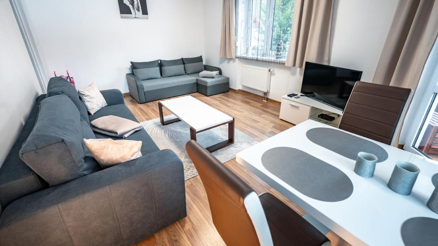 Apartament z 1 sypialnią. This apartment comprises 1 living room, 1 separate bedroom and 1 bathroom with a shower and a hairdryer. Meals can be prepared in the kitchenette, which comes with a stovetop, kitchenware, an oven and a microwave. Featuring a balcony with river views, this apartment also provides a washing machine and a flat-screen TV with satellite channels. The unit offers 3 beds. Apartament - 4 osobowy. Powierzchnia pokoju ok.: 57 mkw.