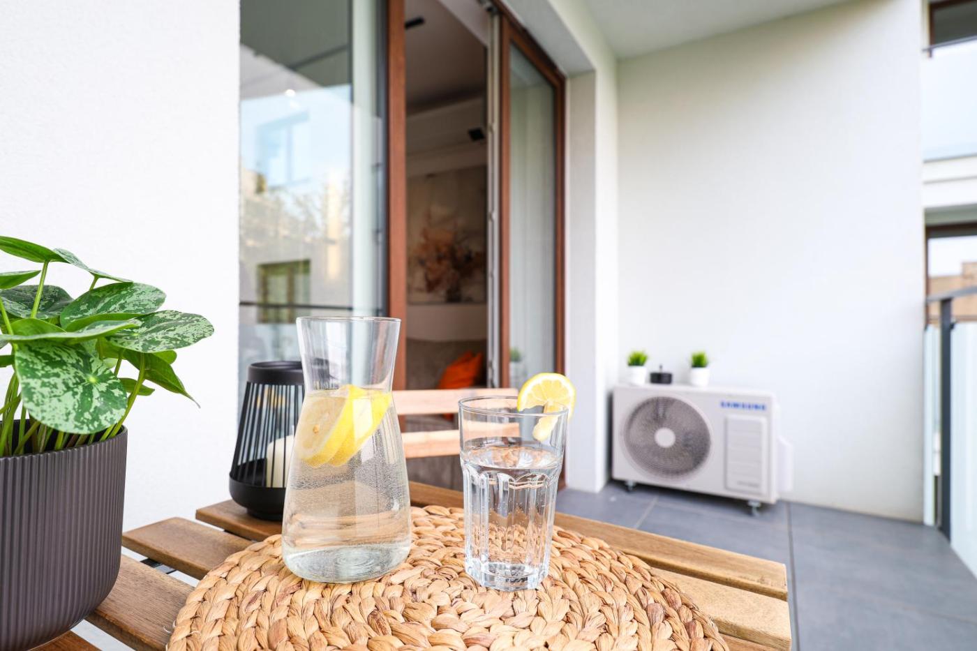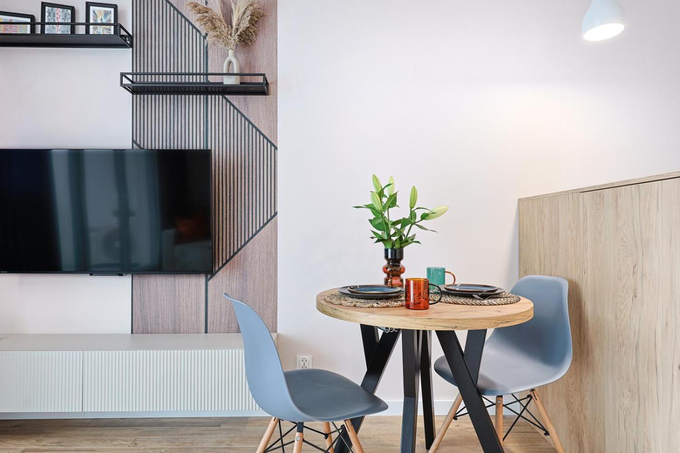 Apartament typu studio. This air-conditioned apartment consists of 1 living room, 1 separate bedroom and 1 bathroom with a shower. The well-fitted kitchenette features a stovetop, a refrigerator, a dishwasher and kitchenware. This apartment has a washing machine, a tea and coffee maker, a flat-screen TV and a balcony. The unit offers 2 beds. Apartament - 4 osobowy. Powierzchnia pokoju ok.: 28 mkw.