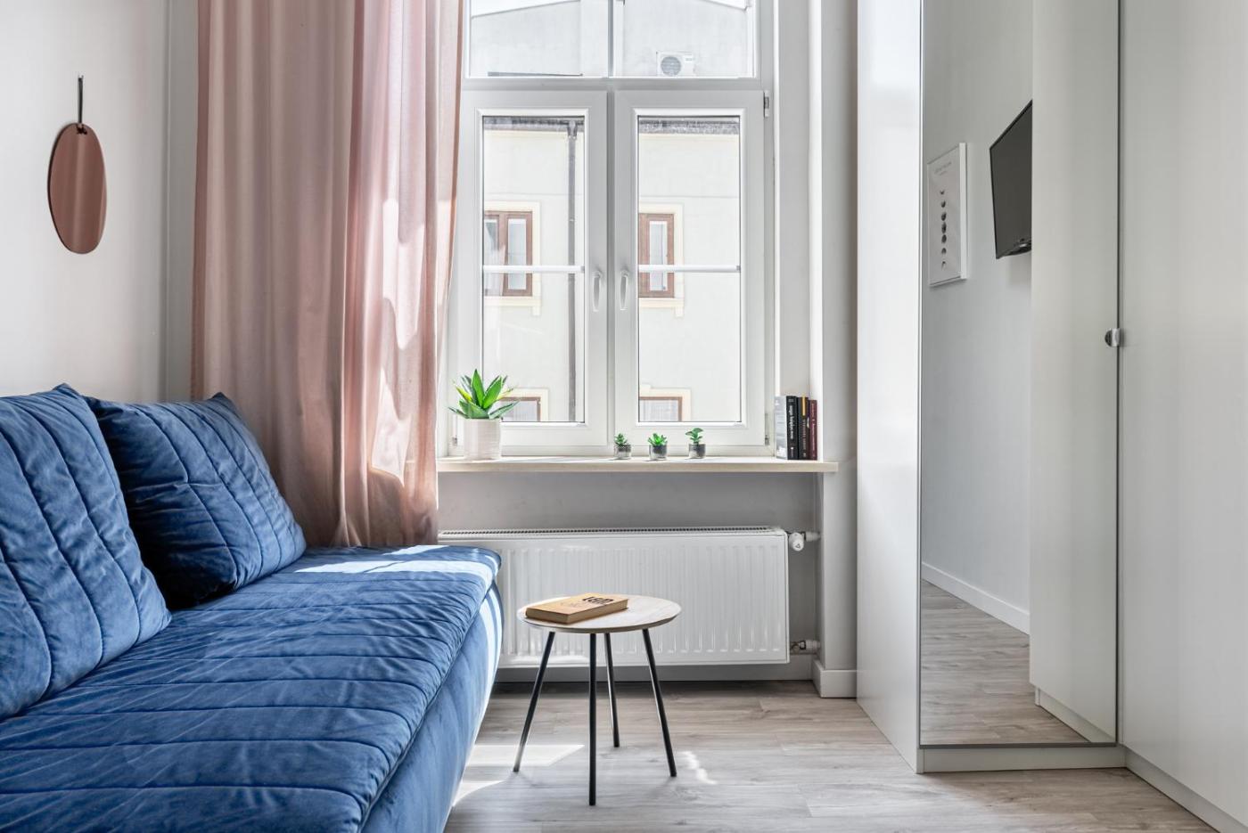 Apartament z 1 sypialnią. This apartment comes with 1 bedroom, a kitchenette and 1 bathroom with a shower and a hairdryer. Meals can be prepared in the well-fitted kitchenette, which features a stovetop, a refrigerator, kitchenware and an oven. This apartment has a washing machine, a tea and coffee maker, a flat-screen TV and a patio. The unit has 1 bed. Apartament - 2 osobowy. Powierzchnia pokoju ok.: 19 mkw.