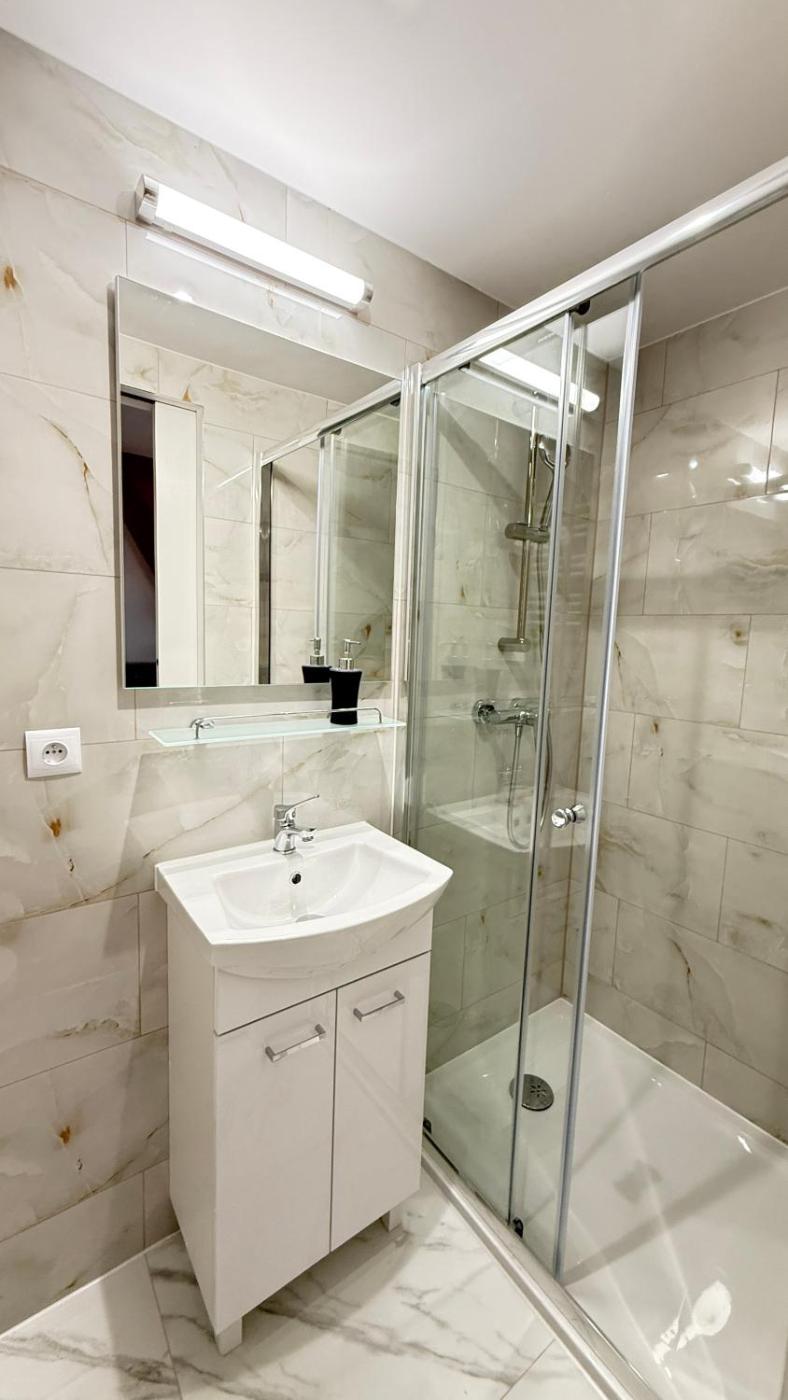 Apartament z 1 sypialnią. This apartment consists of 1 living room, 1 separate bedroom and 1 bathroom with a shower and a hairdryer. In the well-equipped kitchenette, guests will find a stovetop, a refrigerator, kitchenware and a microwave. The apartment provides a washing machine, a tea and coffee maker, a seating area, a flat-screen TV with streaming services, as well as city views. The unit offers 2 beds. Apartament - 4 osobowy. Powierzchnia pokoju ok.: 20 mkw.