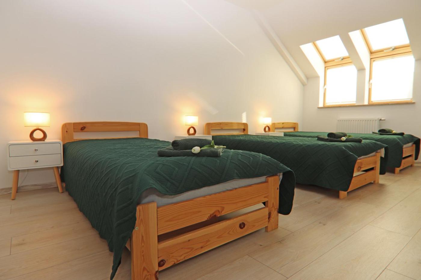Pokój Trzyosobowy ze wspólną łazienką. The triple room offers a wardrobe and an electric kettle, as well as a shared bathroom boasting a shower. The unit has 3 beds. Pokój Trzyosobowy - 3 osobowy. Powierzchnia pokoju ok.: 25 mkw. ;