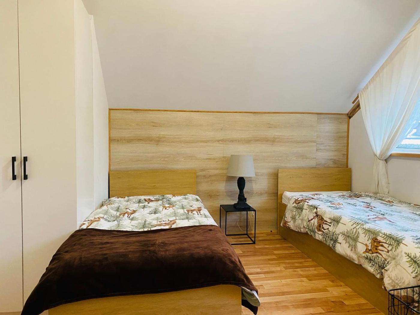 Domek z 2 sypialniami. The chalet includes a shared bathroom equipped with a bath or a shower. The chalets kitchenette is available for cooking and storing food. Featuring a terrace with garden views, this chalet also provides heating and a flat-screen TV. The unit offers 5 beds. Domek - 7 osobowy. Powierzchnia pokoju ok.: 70 mkw.