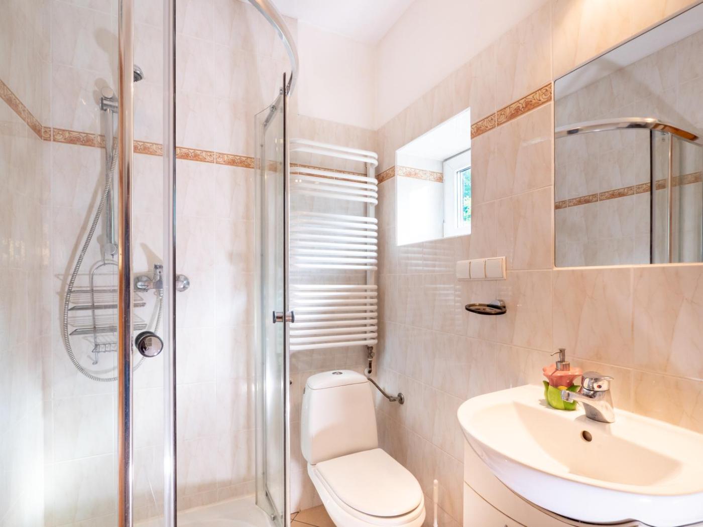 Willa. The fireplace is the standout feature of this villa. Boasting a private entrance, this villa includes 1 living room, 5 separate bedrooms and 5 bathrooms with a shower and a hairdryer. Guests will find a stovetop, a refrigerator, a dishwasher and kitchenware in the kitchen. The villa also features a barbecue. Featuring a terrace with garden views, this villa also offers a washing machine and a flat-screen TV with satellite channels. The unit has 11 beds. Willa - 12 osobowy. Powierzchnia pokoju ok.: 150 mkw.
