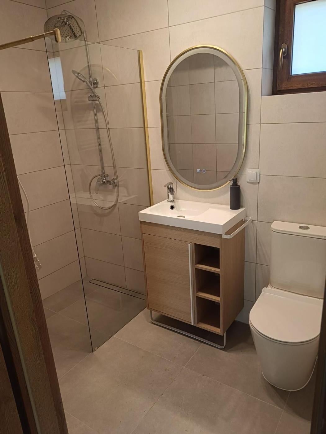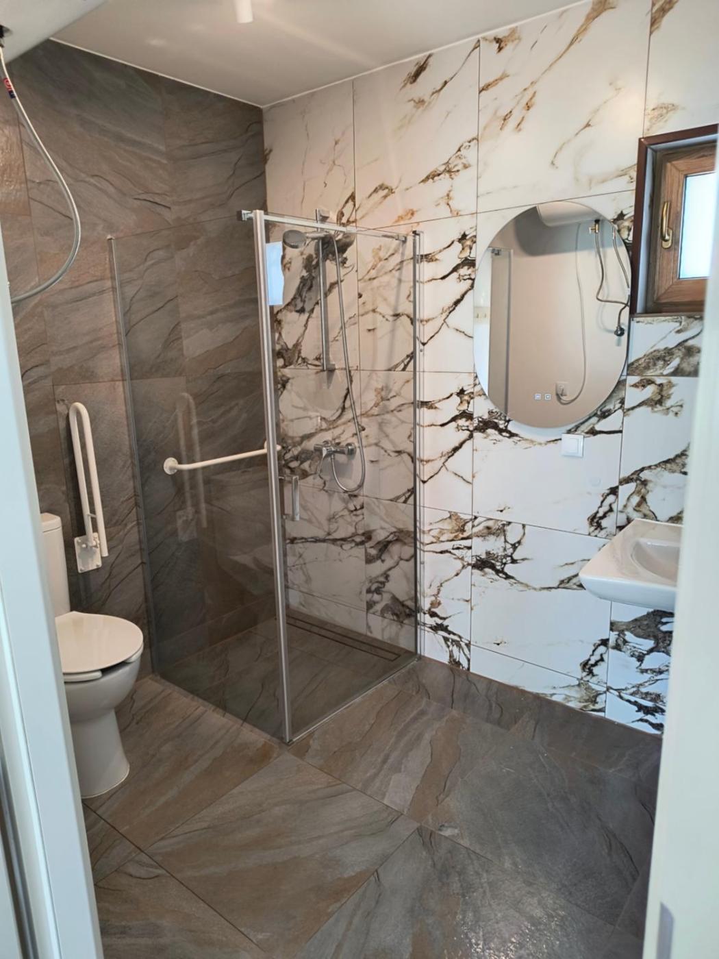 Willa z 2 sypialniami. Featuring a private entrance, this air-conditioned villa is comprised of 1 living room, 2 separate bedrooms and 1 bathroom with a shower. The well-equipped kitchenette features a stovetop, a refrigerator, kitchenware and a microwave. Boasting a terrace, this villa also offers a wardrobe, an electric kettle and a flat-screen TV. The unit offers 4 beds. Willa - 5 osobowy. Powierzchnia pokoju ok.: 48 mkw.