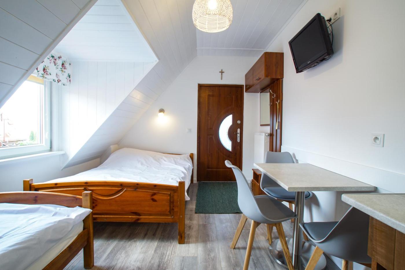Pokój Czteroosobowy. Guests will find a stovetop, a refrigerator, kitchenware and an electric kettle in the kitchenette. The quadruple room also provides guests with a barbecue. This quadruple room features a private bathroom, a private entrance, a wardrobe as well as an outdoor dining area. The unit offers 2 beds. Pokój Czteroosobowy - 4 osobowy. Powierzchnia pokoju ok.: 16 mkw.