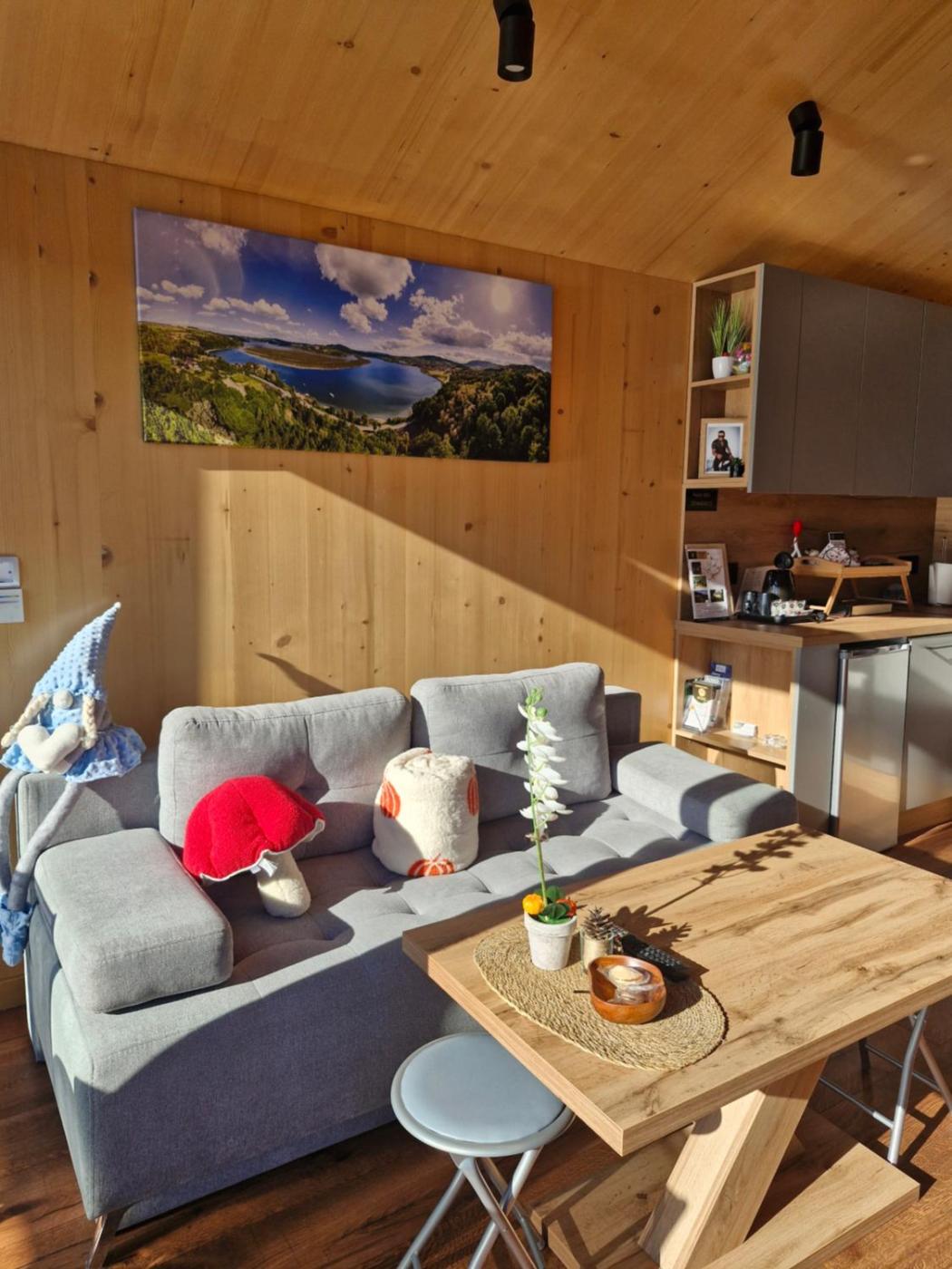 Domek z 1 sypialnią. The pool with a view and hot tub are the standout features of this chalet. Boasting a private entrance, this air-conditioned chalet features 1 living room, 1 separate bedroom and 1 bathroom with a shower and a hairdryer. Guests will find a stovetop, a refrigerator, kitchenware and an oven in the fully equipped kitchen. The chalet also comes with a barbecue. The unit has a tea and coffee maker, lake views, a terrace and winechampagne is available for guests. The unit has 4 beds. Domek - 4 osobowy. Powierzchnia pokoju ok.: 27 mkw.