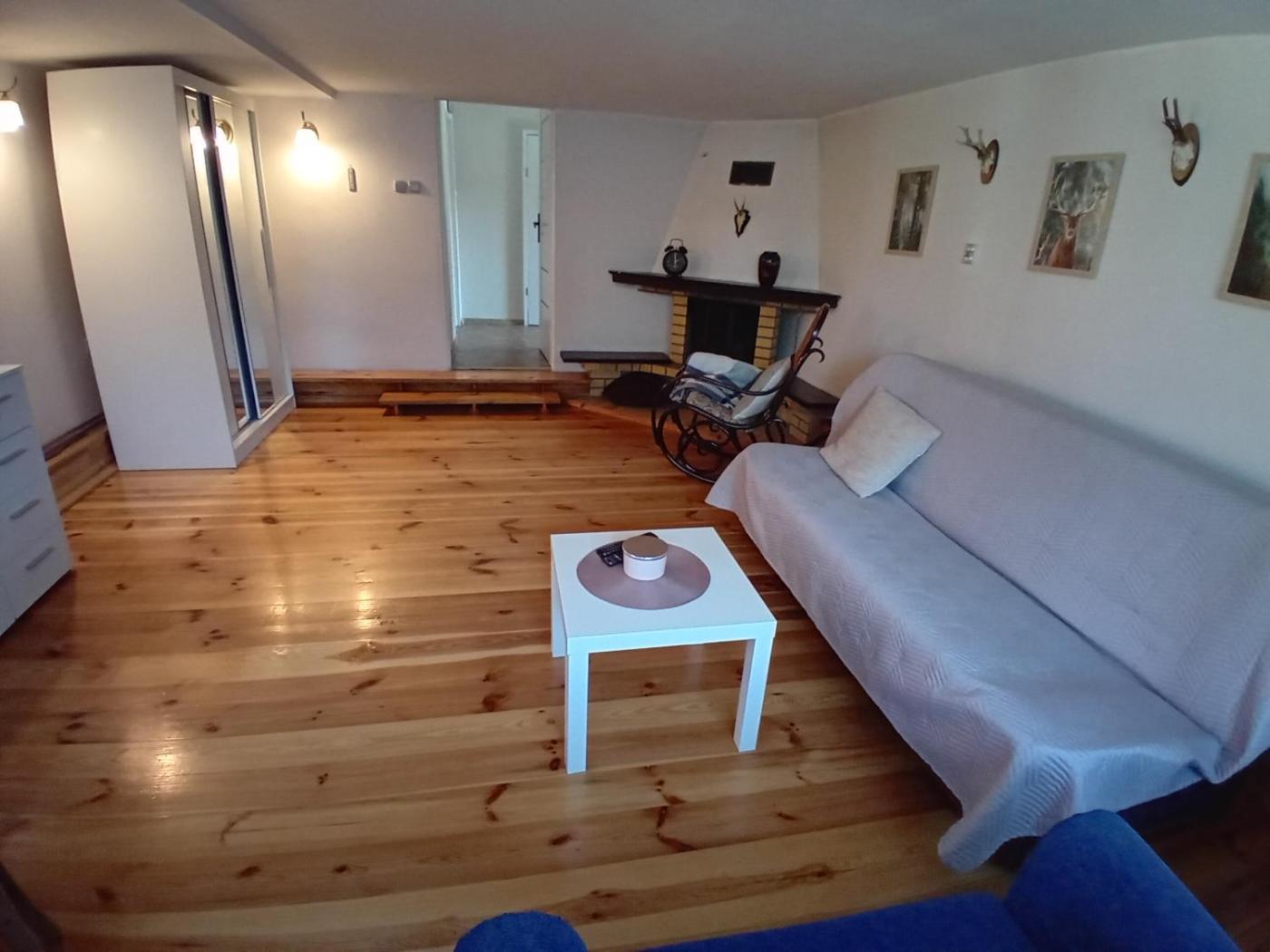 Dom z 1 sypialnią. The fireplace is the standout feature of this holiday home. Boasting a private entrance, this holiday home comes with 1 living room, 1 separate bedroom and 1 bathroom with a bath and a shower. Guests will find a refrigerator, kitchenware, an oven and a microwave in the kitchen. The holiday home also includes a barbecue. The holiday home features a washing machine, a tea and coffee maker, a dining area, a flat-screen TV with satellite channels, as well as garden views. The unit has 4 beds. Dom wakacyjny - 5 osobowy. Powierzchnia pokoju ok.: 70 mkw.