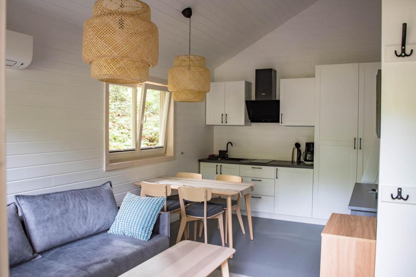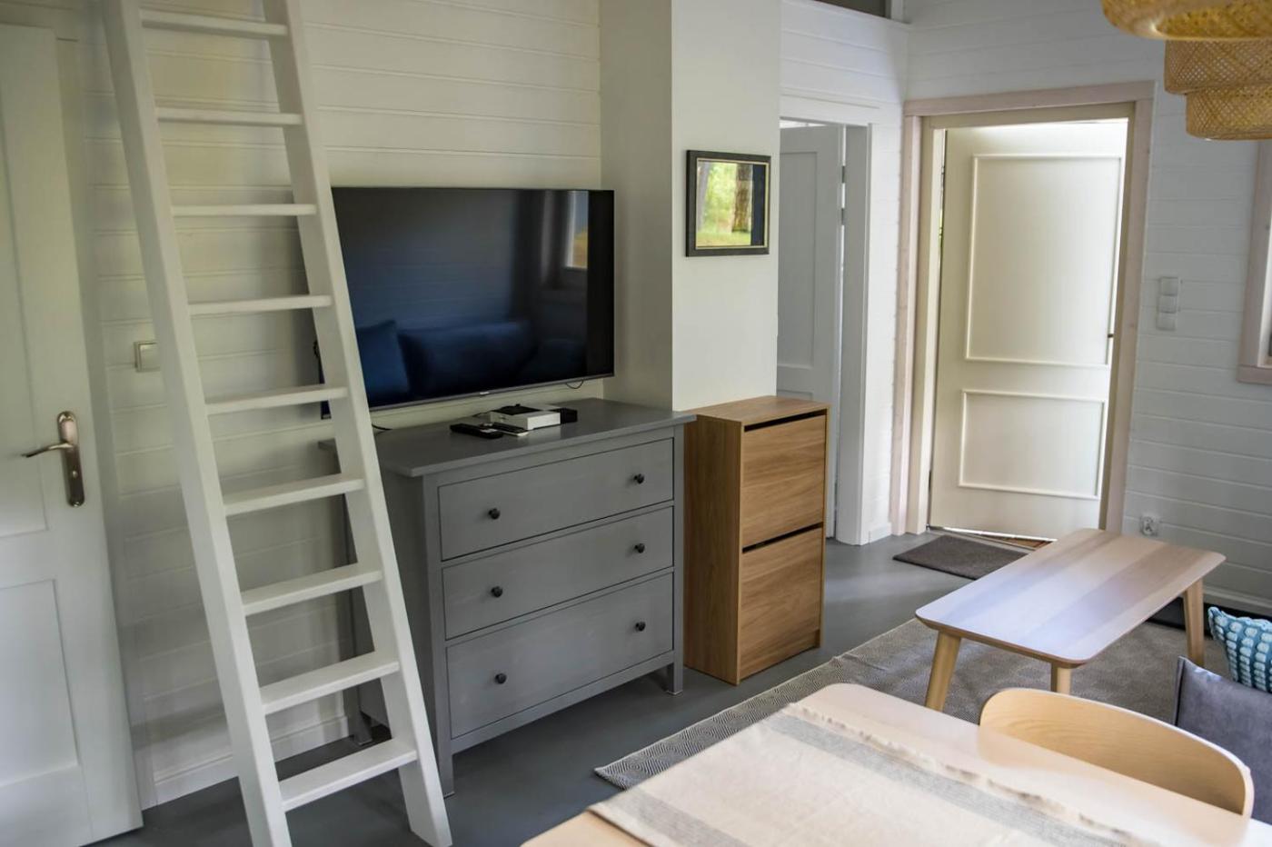Domek typu Superior. Jest to domek z kominkiem. Ten domek z oddzielnym wejściem mieści salon, oddzielną sypialnię oraz łazienkę z prysznicem i suszarką do włosów. W aneksie kuchennym przygotowano płytę kuchenną, lodówkę, przybory kuchenne i czajnik elektryczny. Domek dysponuje ponadto jadalnią, telewizorem z płaskim ekranem oraz tarasem z widokiem na ogród. Do dyspozycji gości są 3 łóżka. Domek - 5 osobowy. Powierzchnia pokoju ok.: 35 mkw. ;