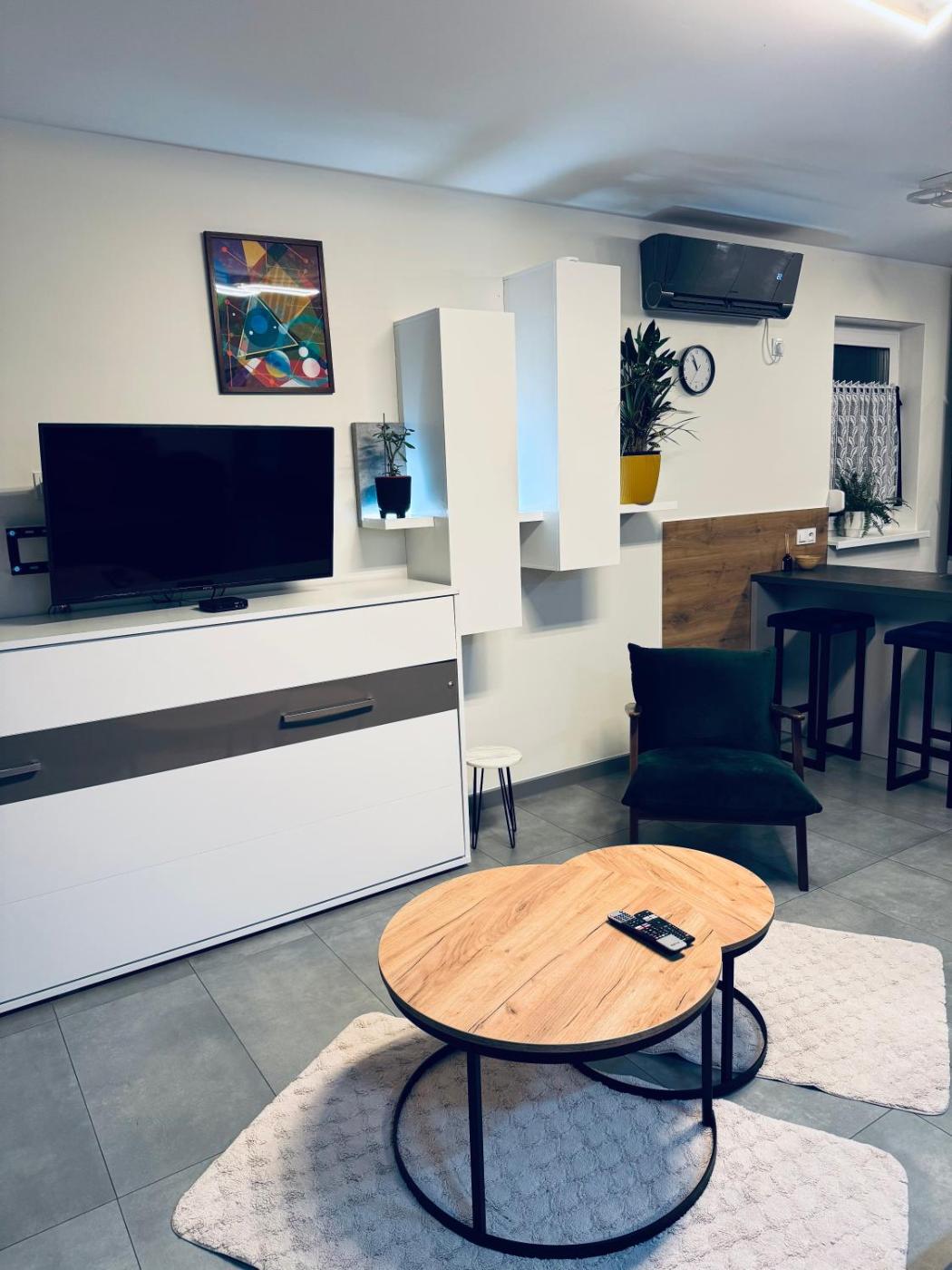 Apartament z tarasem. Featuring a private entrance, this air-conditioned apartment consists of 1 living room, 1 separate bedroom and 1 bathroom with a shower and a hairdryer. In the kitchenette, guests will find a stovetop, a refrigerator, a dishwasher and kitchenware. Boasting a terrace with garden views, this apartment also provides a washing machine and a flat-screen TV. The unit offers 4 beds. Apartament - 5 osobowy. Powierzchnia pokoju ok.: 48 mkw.