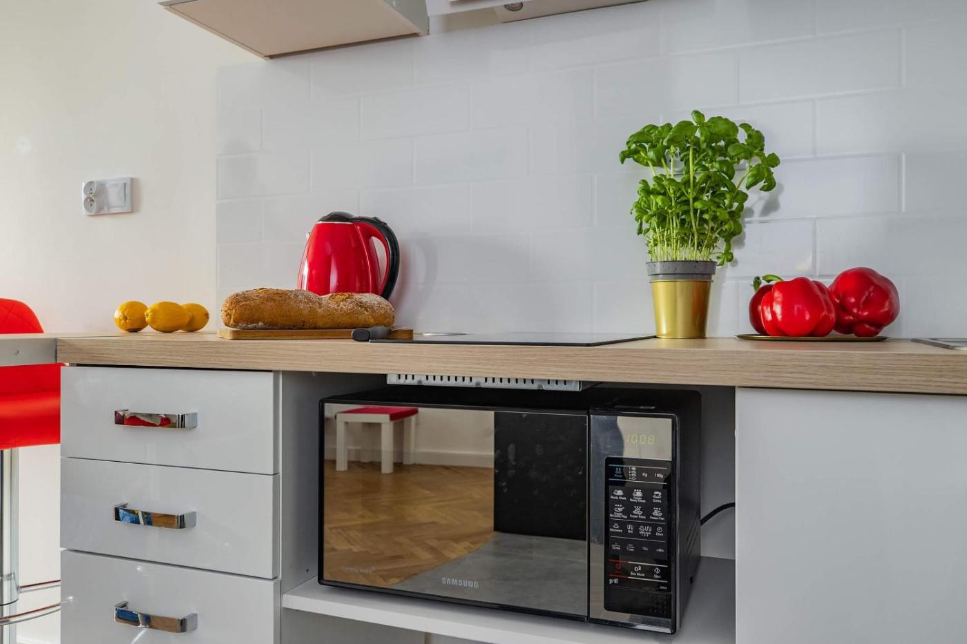 Apartament. The air-conditioned apartment has 1 bedroom and 1 bathroom with a shower and a hairdryer. In the well-equipped kitchen, guests will find a stovetop, a refrigerator, kitchenware and a microwave. The apartment offers a flat-screen TV with cable channels, a washing machine, a tea and coffee maker, a seating area as well as city views. The unit has 1 bed. Apartament - 4 osobowy. Powierzchnia pokoju ok.: 25 mkw.