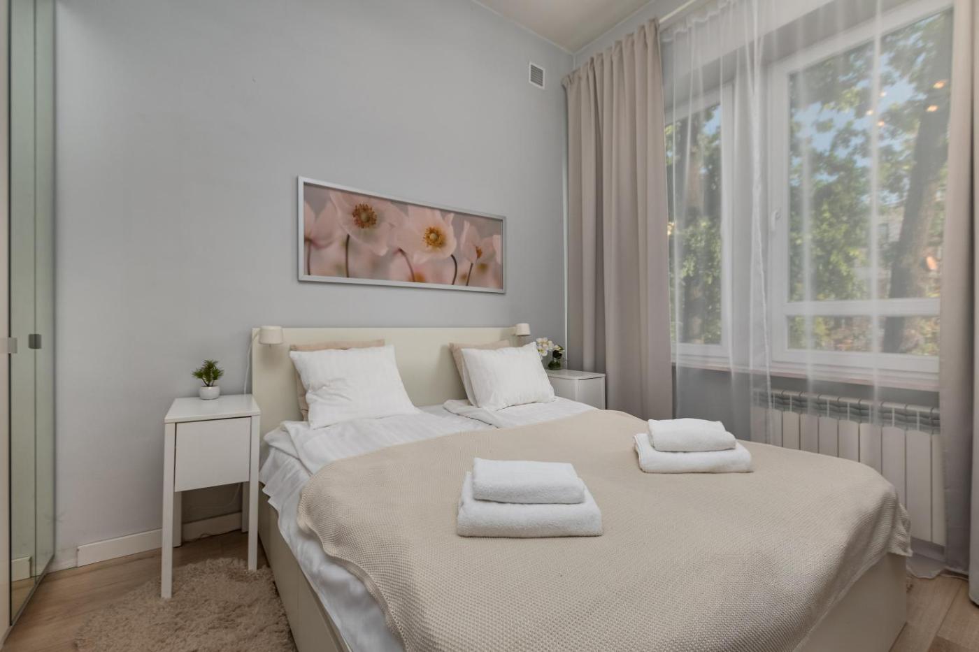 Apartament z 1 sypialnią. This apartment comes with 1 living room, 1 separate bedroom and 1 bathroom with a shower and a hairdryer. The fully equipped kitchen has a stovetop, a refrigerator, a dishwasher and kitchenware. The apartment features a washing machine, a dining area, a wardrobe, a flat-screen TV, as well as city views. The unit has 2 beds. Apartament - 4 osobowy. Powierzchnia pokoju ok.: 32 mkw.
