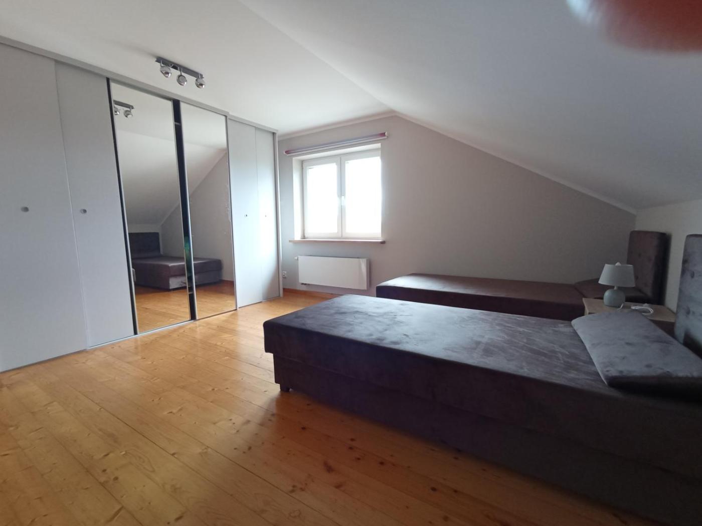 Duży pokój dwuosobowy. This double room has a shared bathroom, a wardrobe, parquet floors as well as a terrace. The unit has 2 beds. Pokój Dwuosobowy - 2 osobowy. Powierzchnia pokoju ok.: 20 mkw.