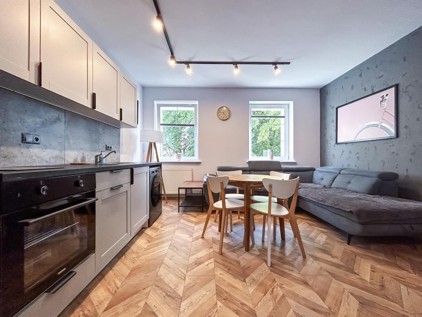 Apartament z 1 sypialnią. This apartment features 1 living room, 1 separate bedroom and 1 bathroom with a shower. Guests can make meals in the kitchenette that features a stovetop, a refrigerator, kitchenware and an oven. The apartment features a washing machine, a wardrobe, an electric kettle, heating and a flat-screen TV. The unit has 2 beds. Apartament - 4 osobowy. Powierzchnia pokoju ok.: 40 mkw.