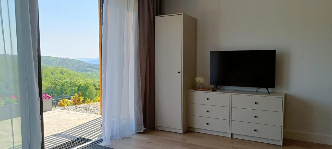 Dom z 2 sypialniami. This air-conditioned holiday home is comprised of 1 living room, 2 separate bedrooms and 1 bathroom with a shower. Guests will find a stovetop, a refrigerator, kitchenware and an oven in the well-equipped kitchenette. The holiday home also has a barbecue. Featuring a terrace with mountain views, this holiday home also offers an electric kettle and a flat-screen TV. The unit offers 4 beds. Dom wakacyjny - 8 osobowy. Powierzchnia pokoju ok.: 64 mkw.