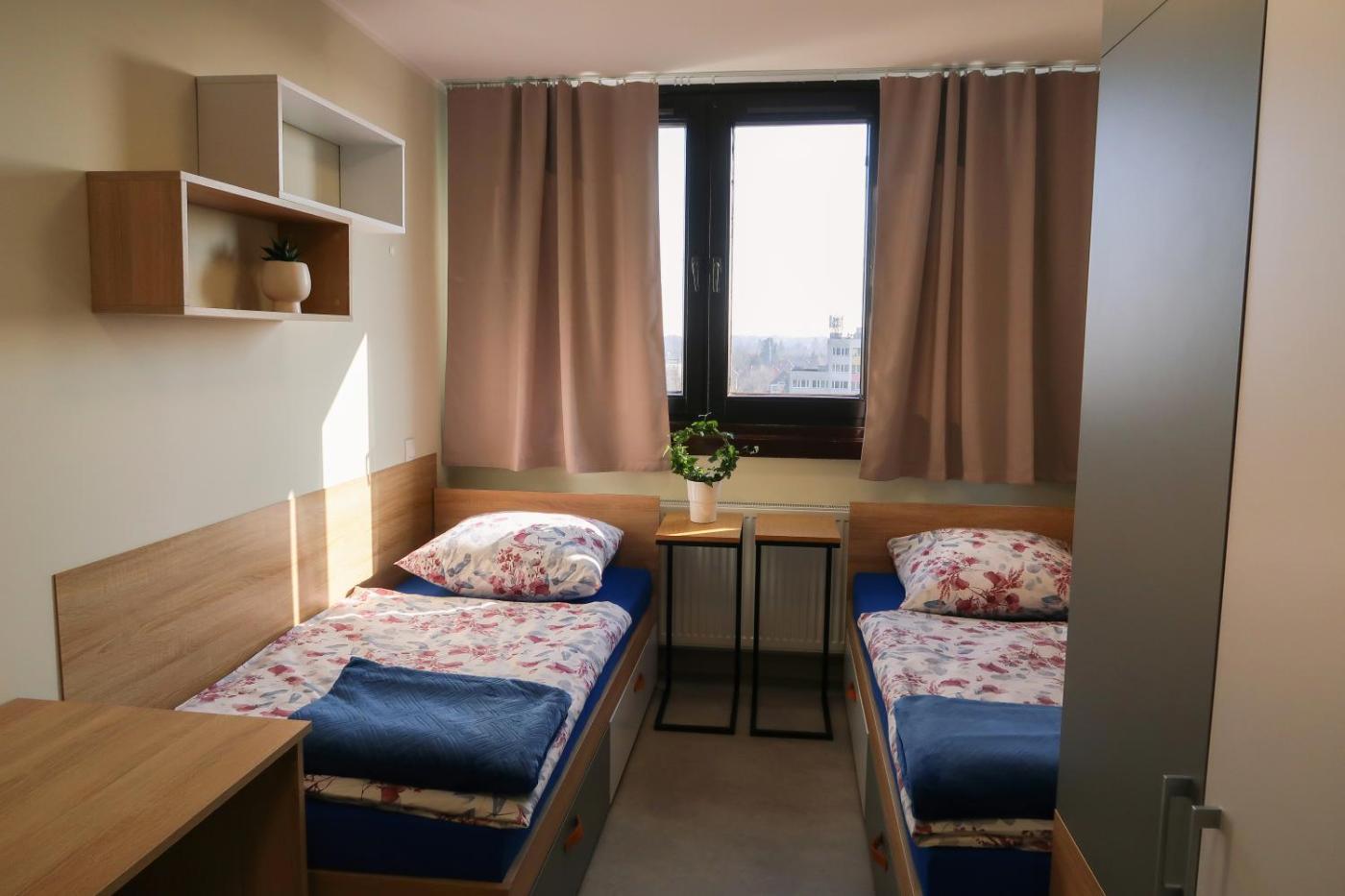Pokój dwuosobowy. The double room offers a dining area and a wardrobe, as well as a private bathroom featuring a shower. In the fully equipped kitchenette, guests will find a stovetop, a refrigerator, kitchenware and an electric kettle. Rooms on the upper floors are reachable by lift. The unit offers 2 beds. Pokój Dwuosobowy - 2 osobowy. Powierzchnia pokoju ok.: 18 mkw. ;